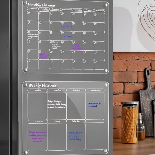 Elegantiškas, skaidraus akrilo dizainas ne tik suteiks jūsų virtuvei modernumo, bet ir suteiks galimybę efektyviai planuoti kasdienę veiklą.