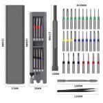 Komplekte yra 28 tikslūs antgaliai, 1 atsuktuvas, pincetas ir laužtuvas
