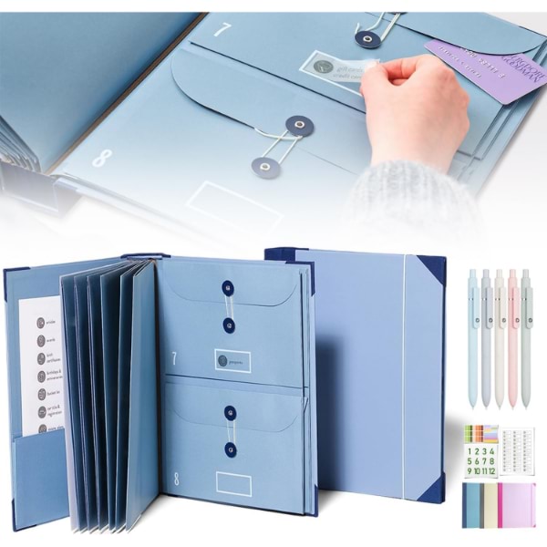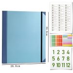 Komplekte 10 išplečiamų vokų (6 pilno dydžio, 4 pusės dydžio), kiekvienas talpinantis iki 10 lapų.