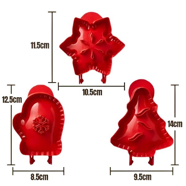 Suteikite savo pyragams šventiško unikalumo naudodami tris įdomias formas – snaigės, pirštinės ir Kalėdų eglutės.