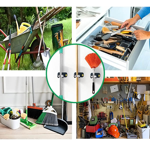 Šie laikikliai puikiai tinka ne tik šluotoms, bet ir sodo įrankiams, skėčiams ar net jūsų įrangai laikyti tvarkingai garaže. Nesvarbu, ar prie įėjimo durų, vonios kambaryje, virtuvėje, ar lauke, sode – šie laikikliai ras savo vietą bet kurioje jūsų namų vietoje.